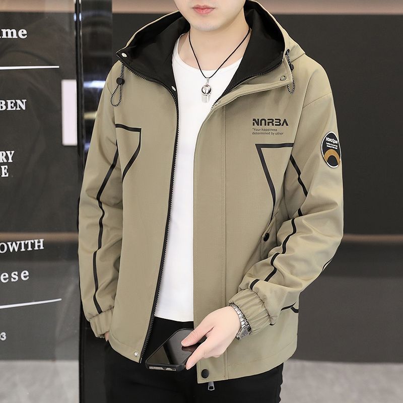 男性、ティーンエイジャー、学生向けの春と秋の薄手のジャケット、ハンサムな防風ジャケット、フード付き作業着、コートトップ