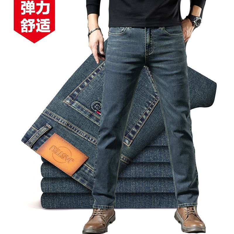 秋と冬の新レトロノスタルジックなジーンズメンズスリムストレートパンツ 2024 ファッションストレッチ紳士服ジーンズ