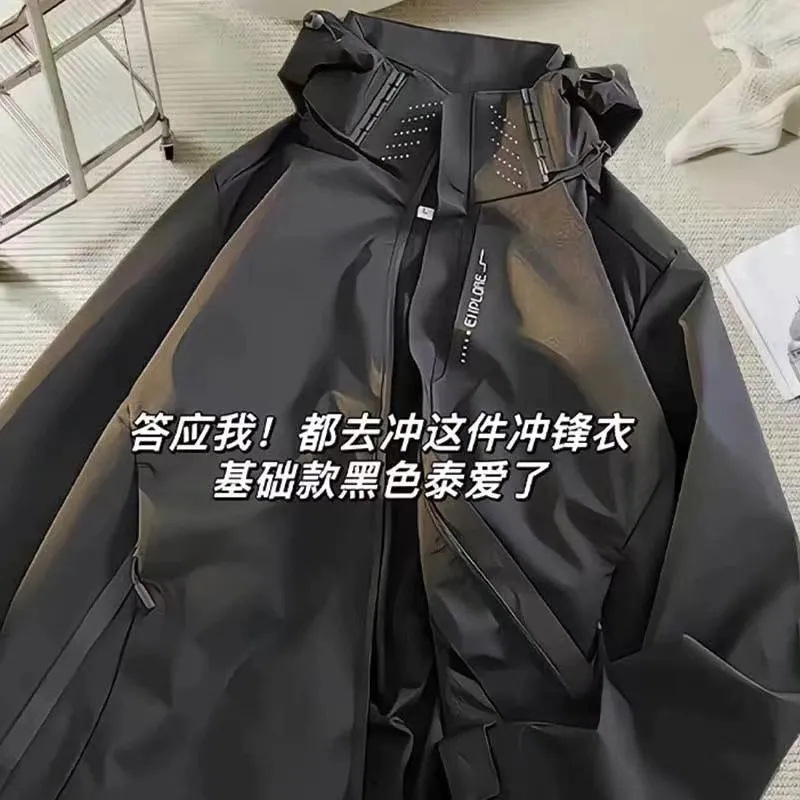 春と秋のジャケット、トレンディなアウトドア作業服、ルーズカジュアルトレンディなフード付きジャケット、男性と女性のための同じスタイルのトップス