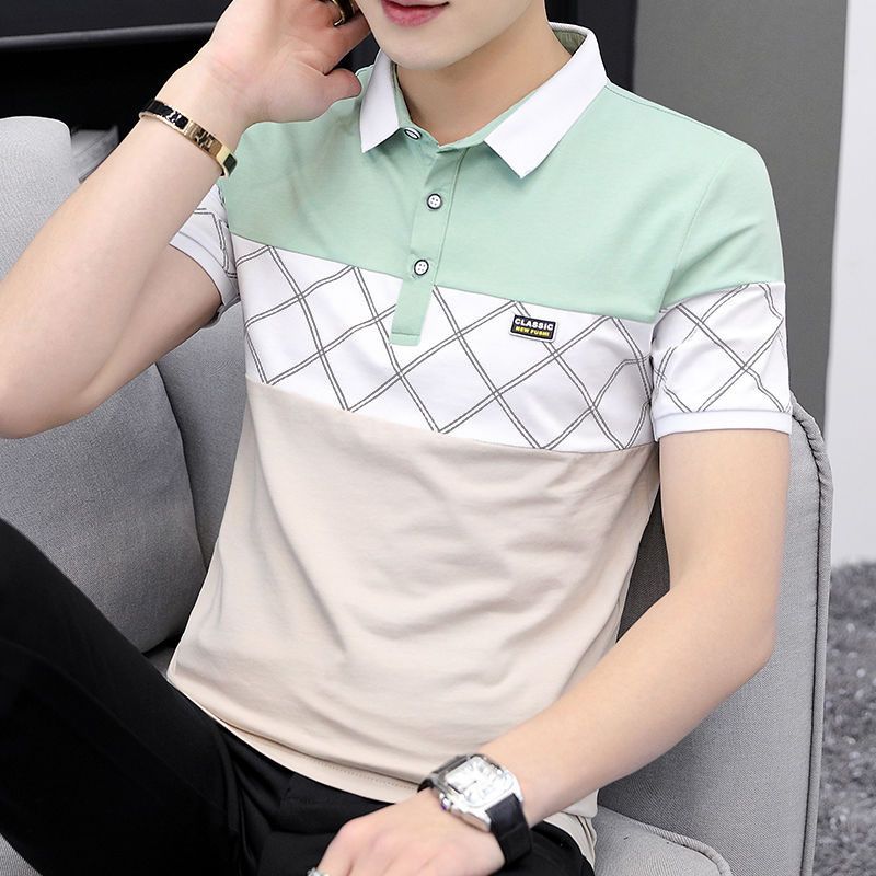 綿95夏メンズ半袖Tシャツスリムラペルメンズポロシャツトレンディな新しい襟付きメンズTシャツ