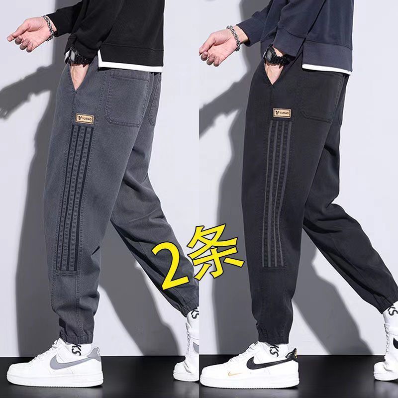 メンズ春秋新作カジュアルパンツトレンディブランドルーズレギンスハーレム万能ストライプオーバーオールズボン男の子服
