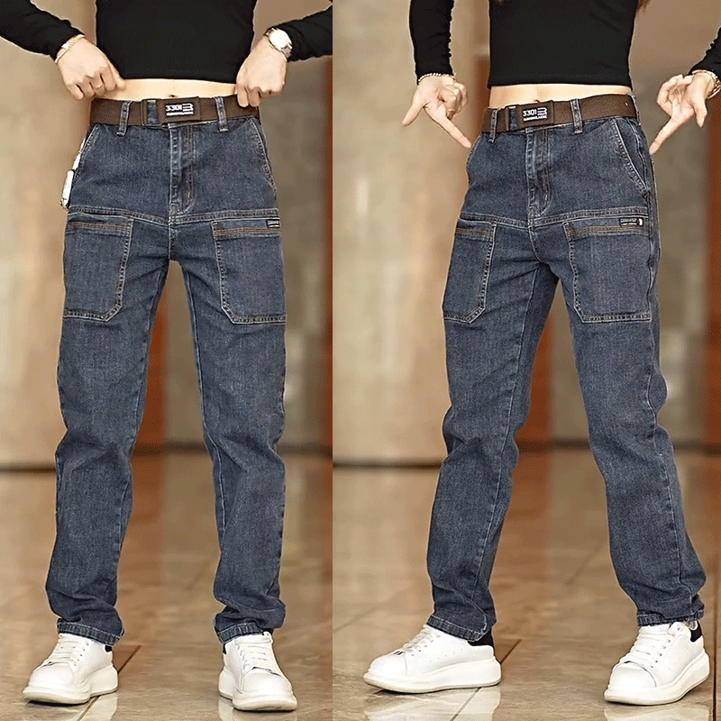 2025年初春 6ポケット メンズ ワークウェア 万能ジーンズ メンズ マルチポケット ストレートパンツ ストレッチ トレンド メンズパンツ