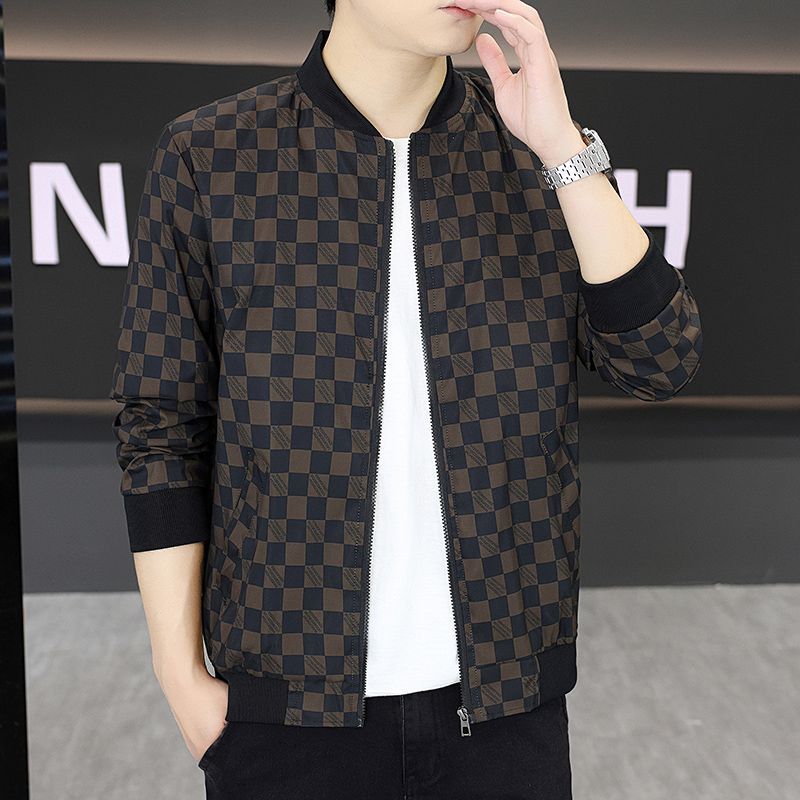 2025年新型春秋立襟コート男性新型ファッションファッション野球襟ヨーロッパ風格子ジャケット
