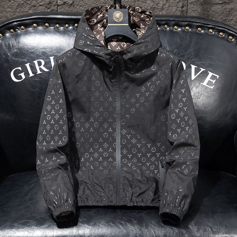 ヨーロッパ商品の春秋2025年の新型ファッションブランドのコートのカジュアルな流行の帽子と一緒にジャケットの男性服のプリントのコートを合わせます。