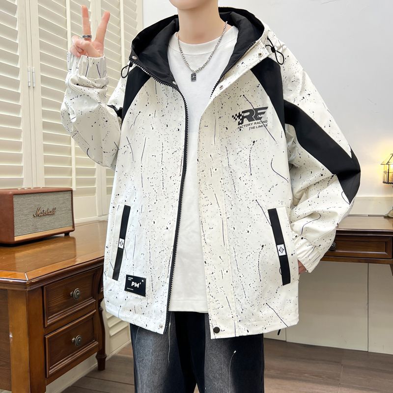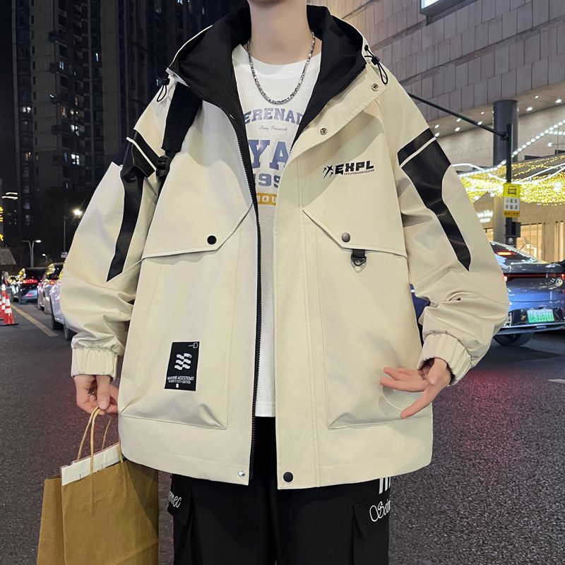 春の新作メンズシンプルフード付きジャケット韓国風トレンディユースカジュアルジャケットルーズジャケットトップトレンディ