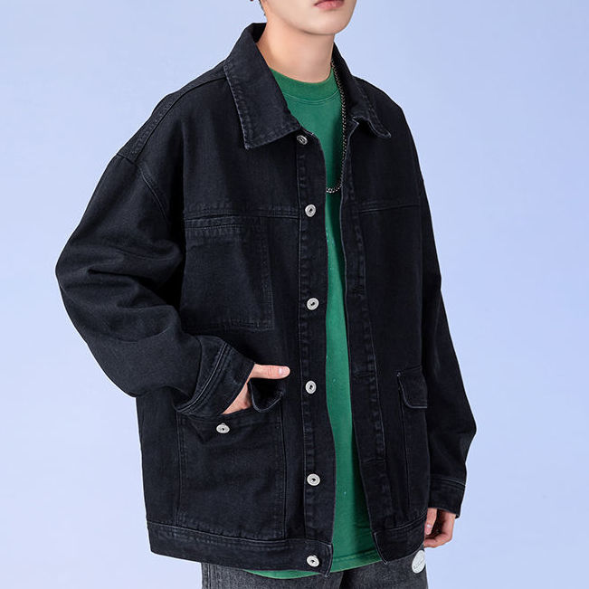 春の新作メンズデニムジャケットアメリカンシンプルハンサムルーズ万能ワークジャケットデニムジャケットトレンディ