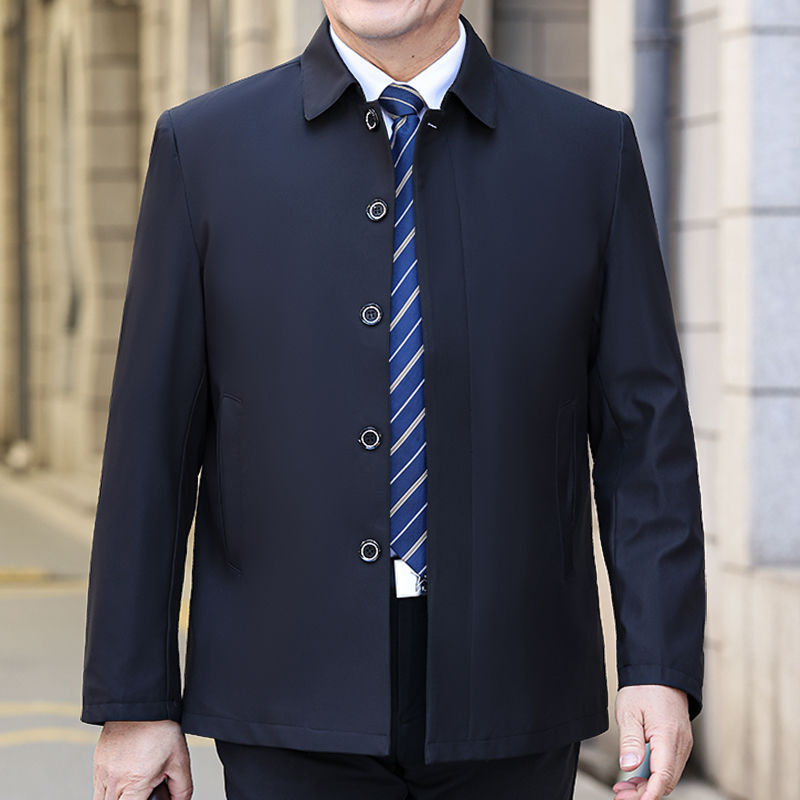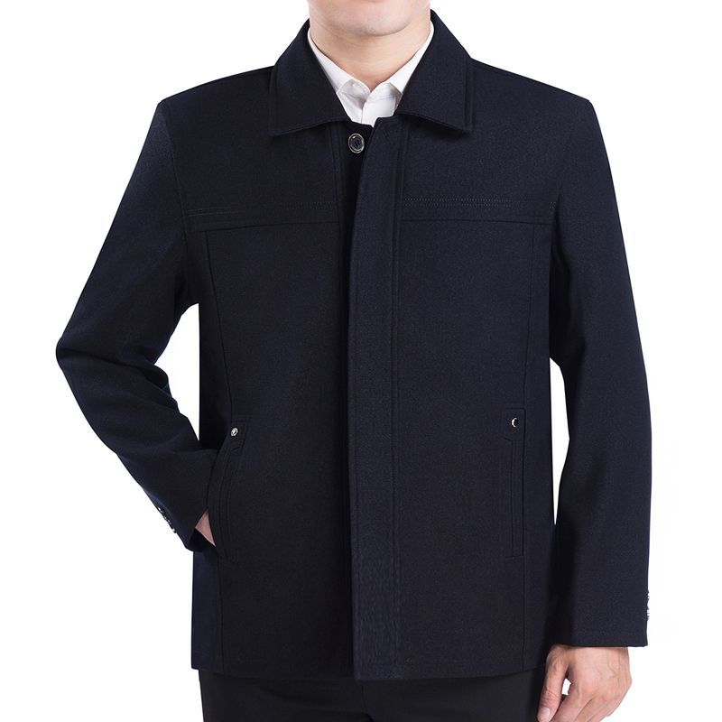 中高年紳士服、中年紳士コート、春秋ジャケット、お父さんトップス、ラペル、ゆったりボタンジッパー