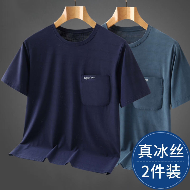 お父さんアイスシルク半袖Tシャツ中高年男性夏ラウンドネックアンダーシャツゆったり速乾メッシュおじいちゃんボトリングシャツ