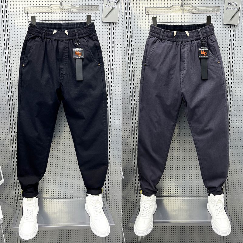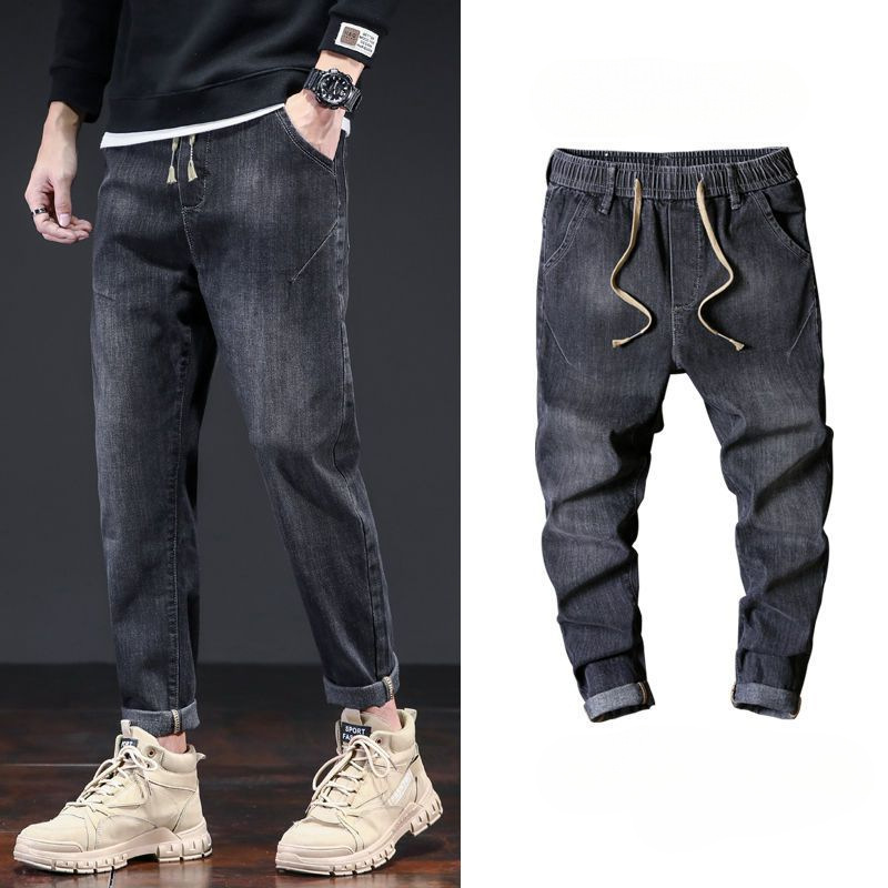秋冬の新型ジーパンの男性の長ズボンの修身の小さいストレートの筒は腰のひもの小さい足のズボンの男子学生の高弾力を締めます。