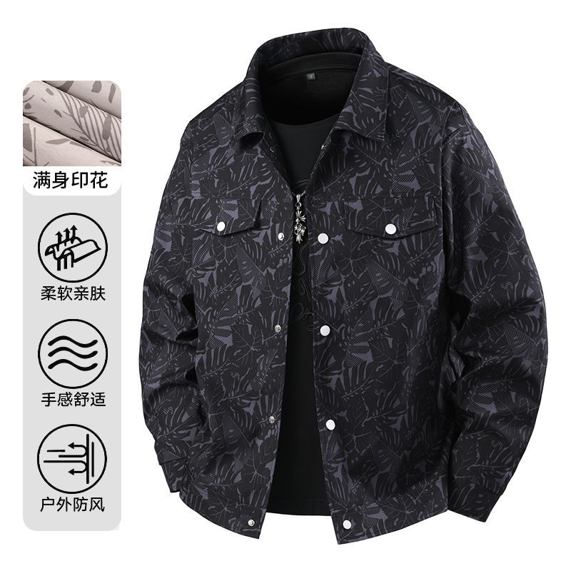 /春秋の新型プリントジャケット男性はゆったりしています。