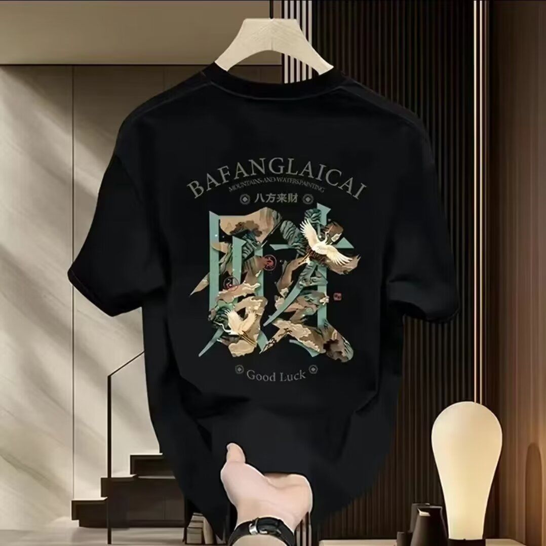 2024夏の新型ネット赤半袖アイデア金持ちプリント潮牌底シャツ半袖tシャツ男