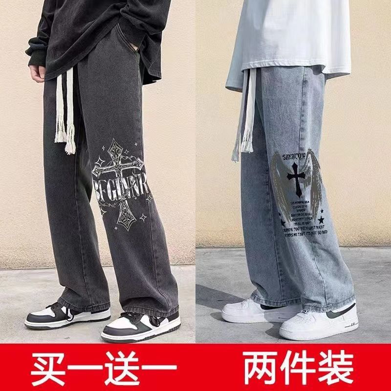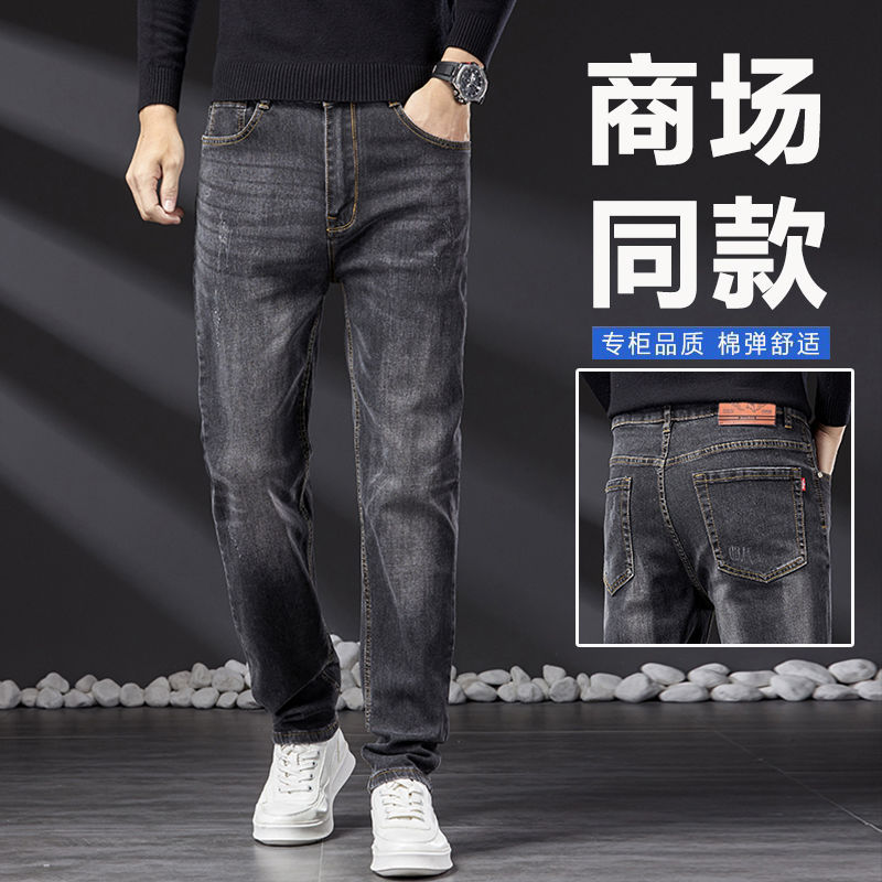 春秋タイプのジーンズ男性ビジネスカジュアル直筒ゆったり青年中年弾力アメリカ緩和新型長ズボン