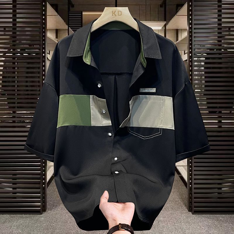 夏の衝突色は半袖のシャツの男性の格好いいシャツの薄いタイプのゆったりしているカジュアルな半袖のオーバーのファッションの上着をつなぎ合わせます。