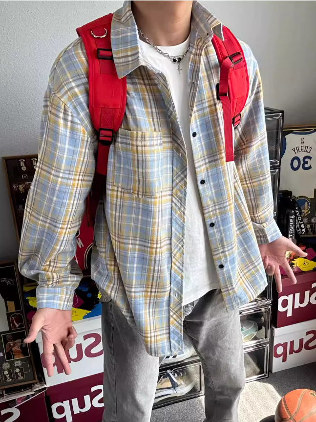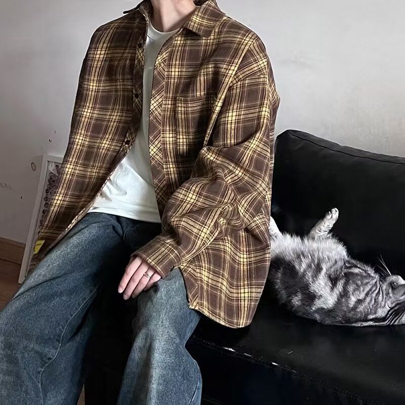 アメリカのレトロな長袖シャツ2024春の新しいカジュアルなファッションブランドの格子がゆったりしているシャツのコートins