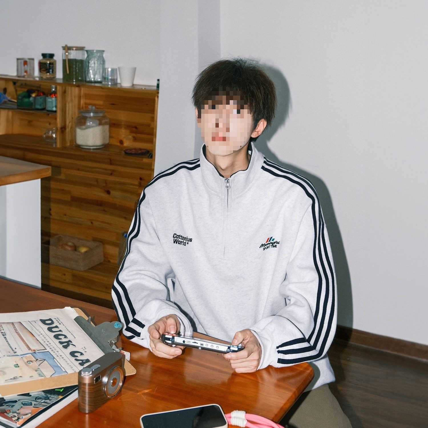 立襟半ファスナーの衛衣男女秋冬のベルベットは刺繍の潮牌のゆるいカップルの重いポンドの上着のコートを厚くします。
