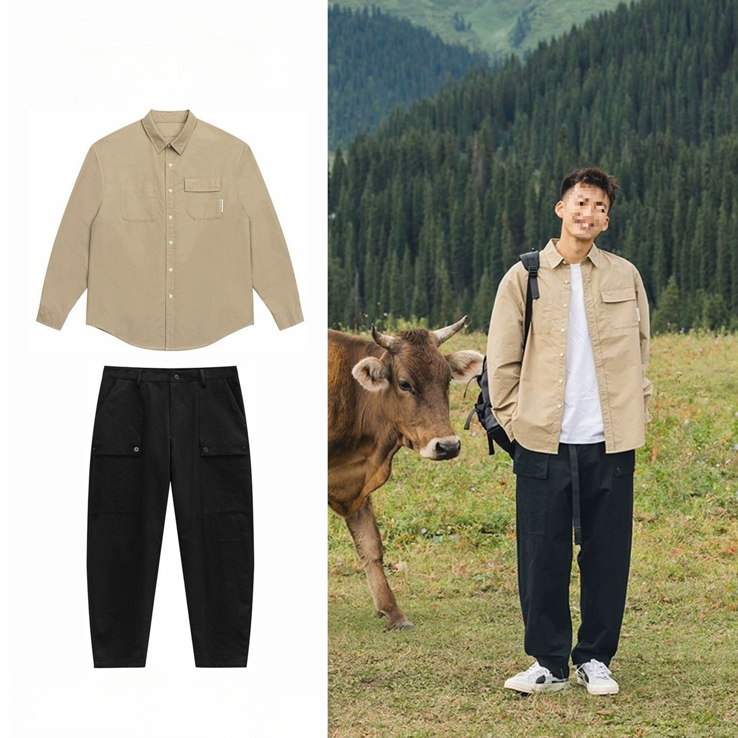 春と秋のセットの明線筋の長袖のシャツのシャツのコートの薄いタイプのごろつきのかっこいい男性の工装のカジュアルなズボン