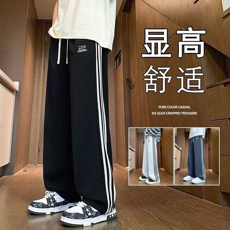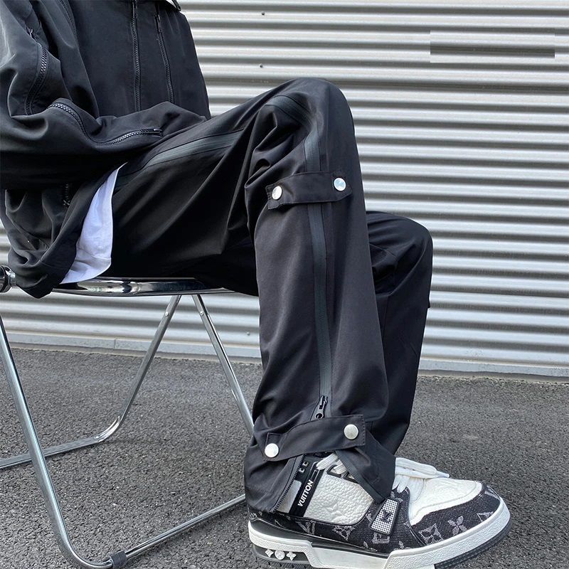 青春の潮流の垂直感のカジュアルなズボンの潮のブランドの香港風のゆったりしているズボンの足はひものストレートなズボンを引きます。