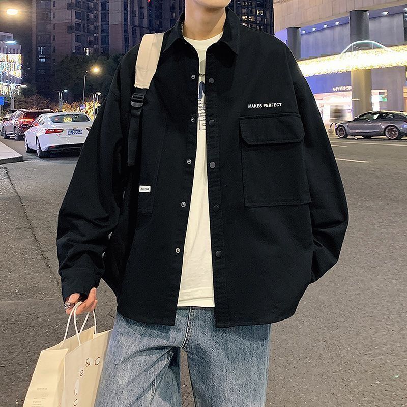 春秋の男性コート春秋の工装シャツの薄いタイプの港風系のファッションジャケットはゆったりしています。