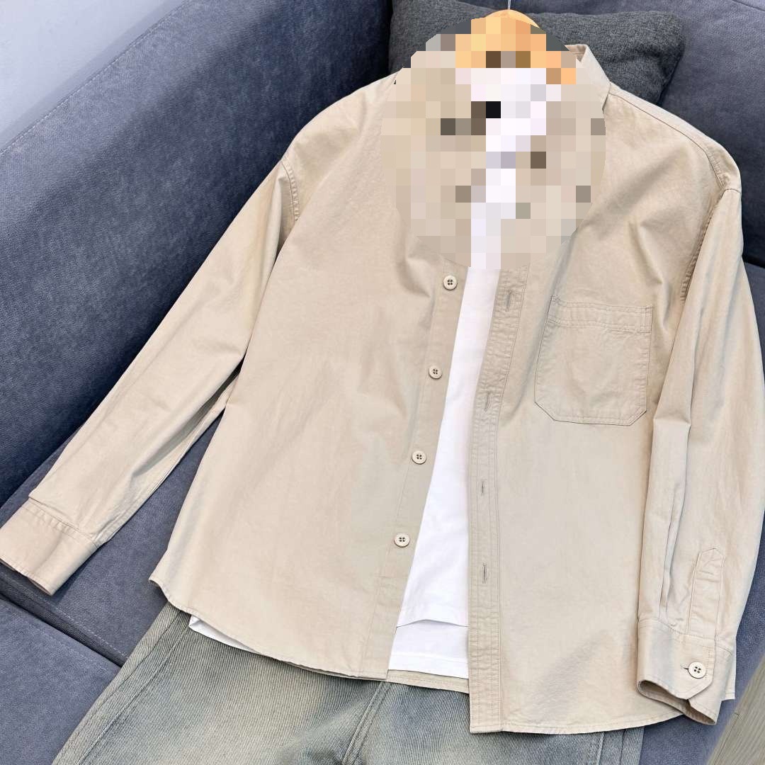 日系の新型カーキ色シャツ男子長袖香港風基礎モデルカジュアルでゆったりした純色の外着工装シャツ