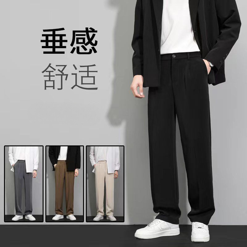 ズボンの男性の春秋のゆったりしたストレートズボンの新型のズボンはやせているカジュアルなズボンの広い足のスーツのズボンの男性の潮流を現します。