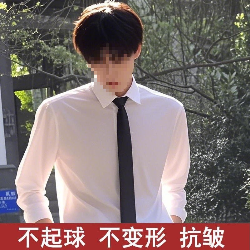 純色の無熱長袖男性シャツ通勤ビジネスカジュアル速乾香港風修身感のある白いシャツ