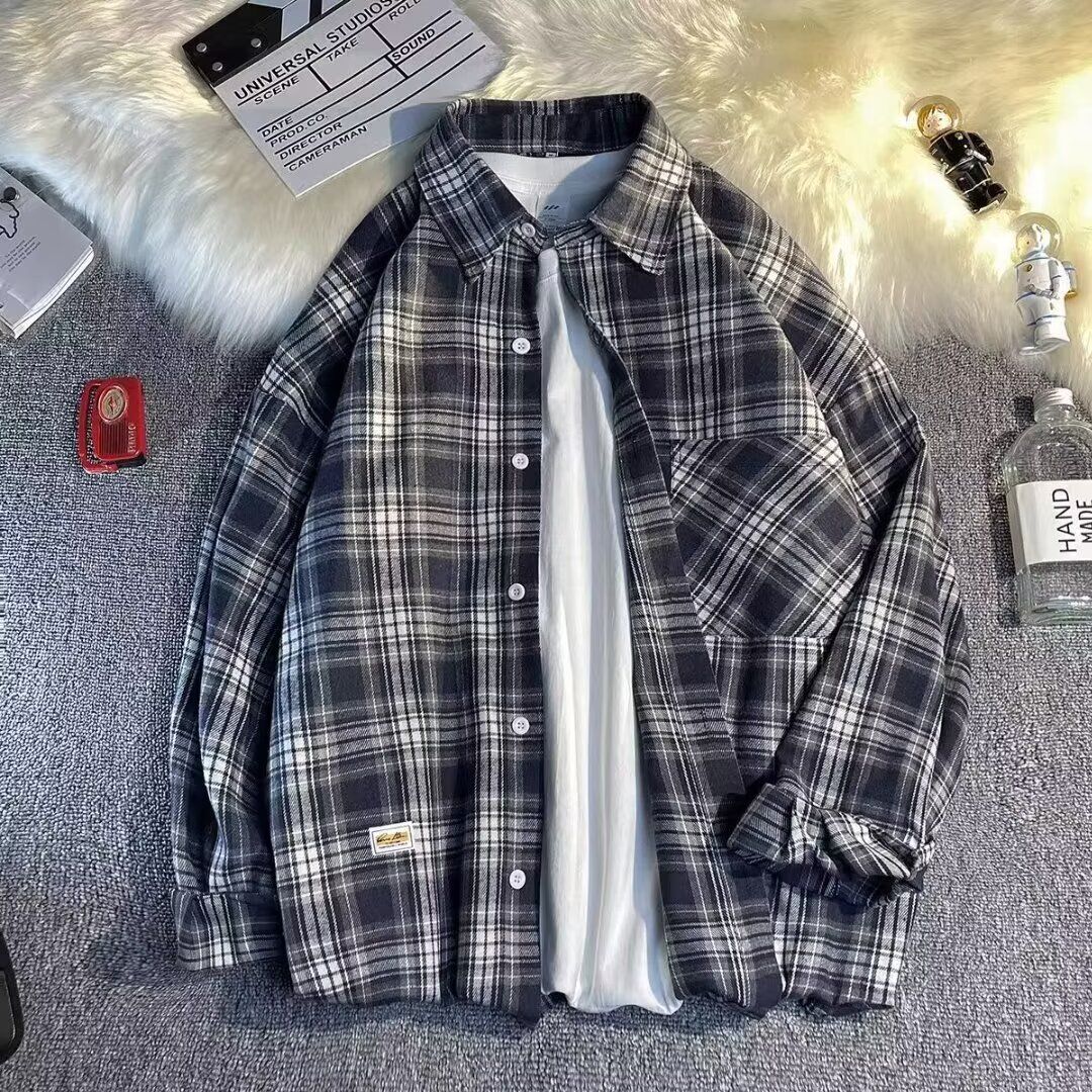 格子の大きいサイズのシャツのカップルの香港風のゆったりしているシャツのコートの男性の秋冬のファッションの百合のカジュアルな復古の薄い金