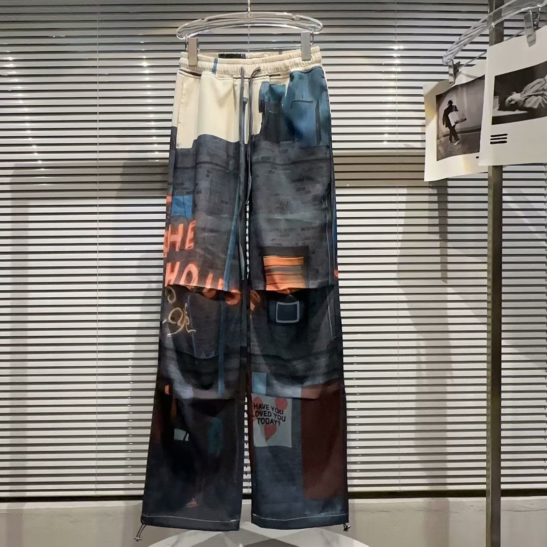 韓系の潮流の王嘉爾の同項のゆったりしているまっすぐな筒の広い足のカジュアルなズボンの男女の落書きのプリントの高い街の運動のズボン