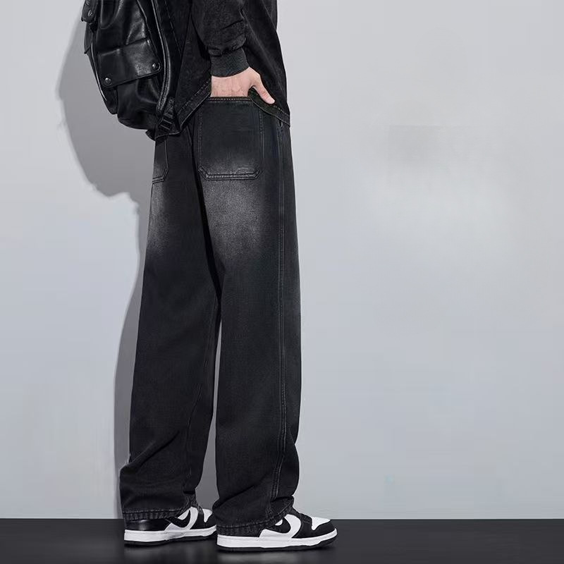 ストレッチジーンズメンズストレートレッグルーズトレンド万能大きいサイズワイドレッグパンツカジュアルファットメンズトレンドブランド秋冬新作