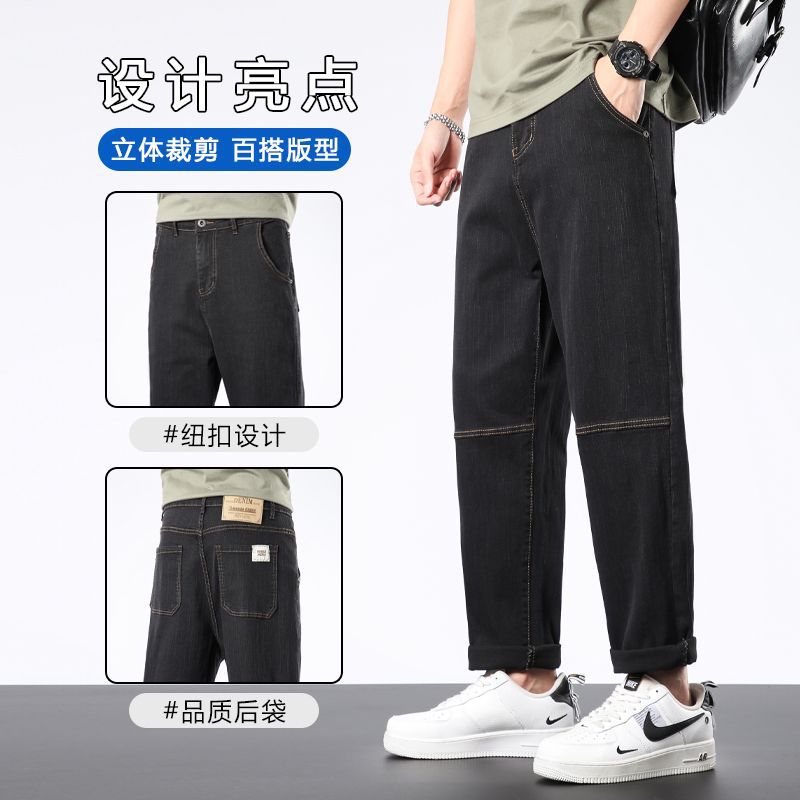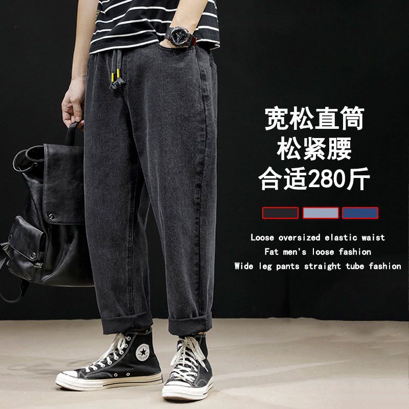 春と秋のワイドレッグ大きいサイズジーンズメンズルーズストレートハーレムパンツ香港スタイルカジュアル9点パンツファットマンパンツ