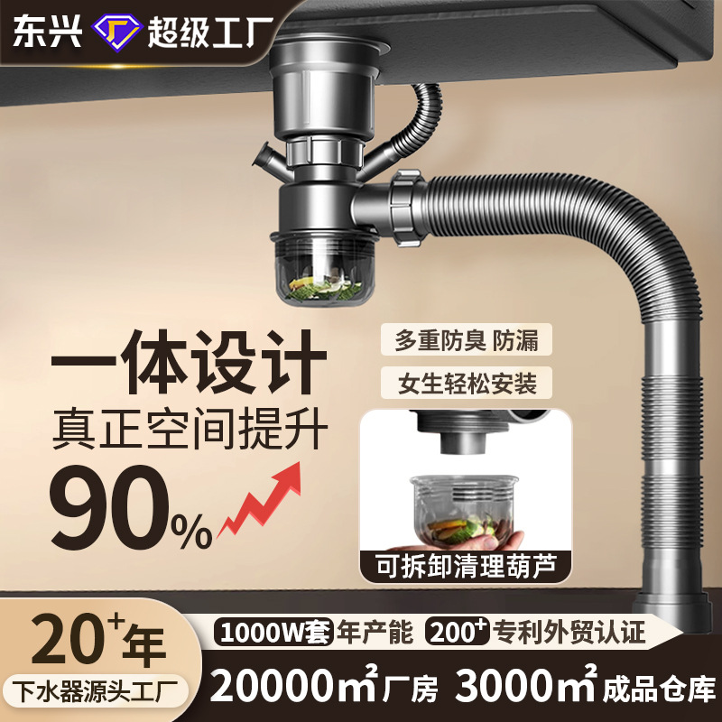 シングルスロット排水管キッチンシンク下水道アクセサリー超省スペース一体型防臭排水管継手セット