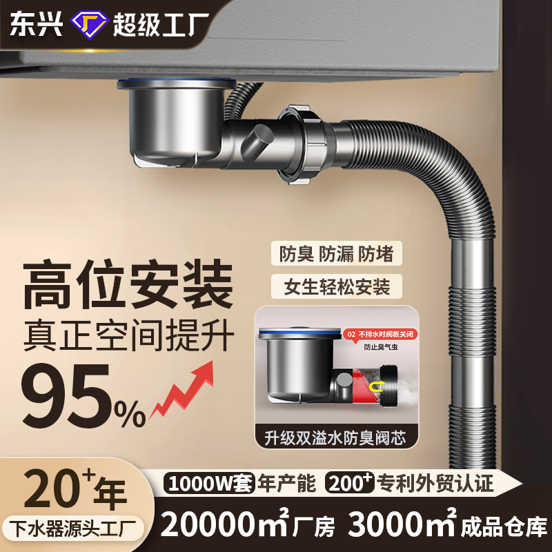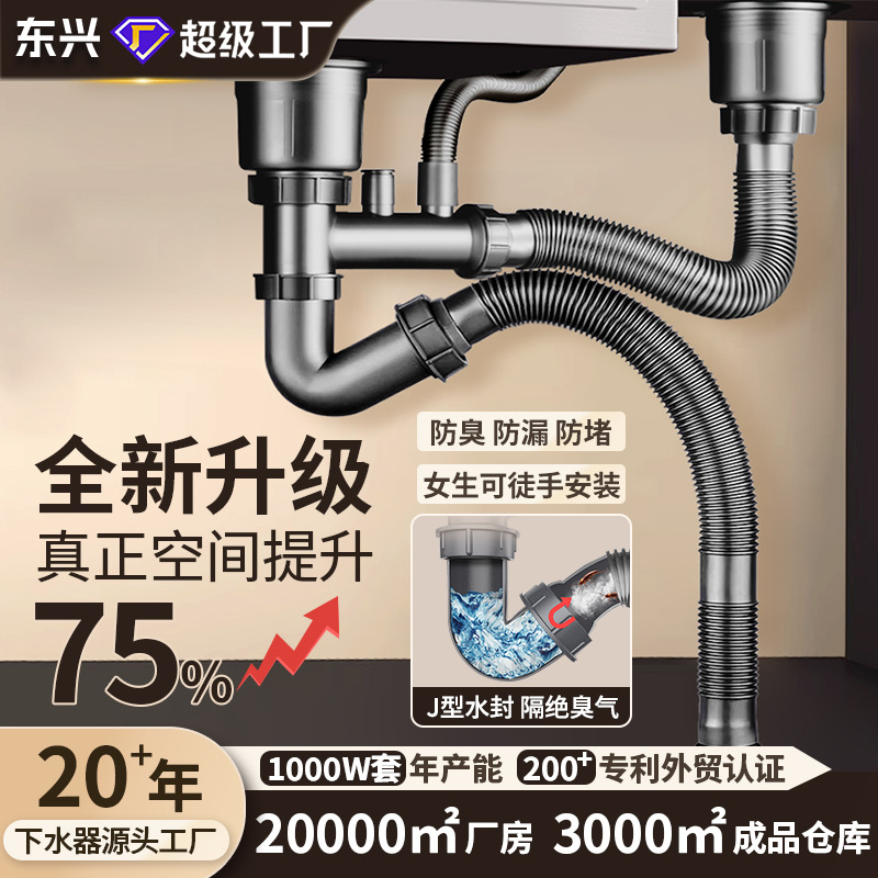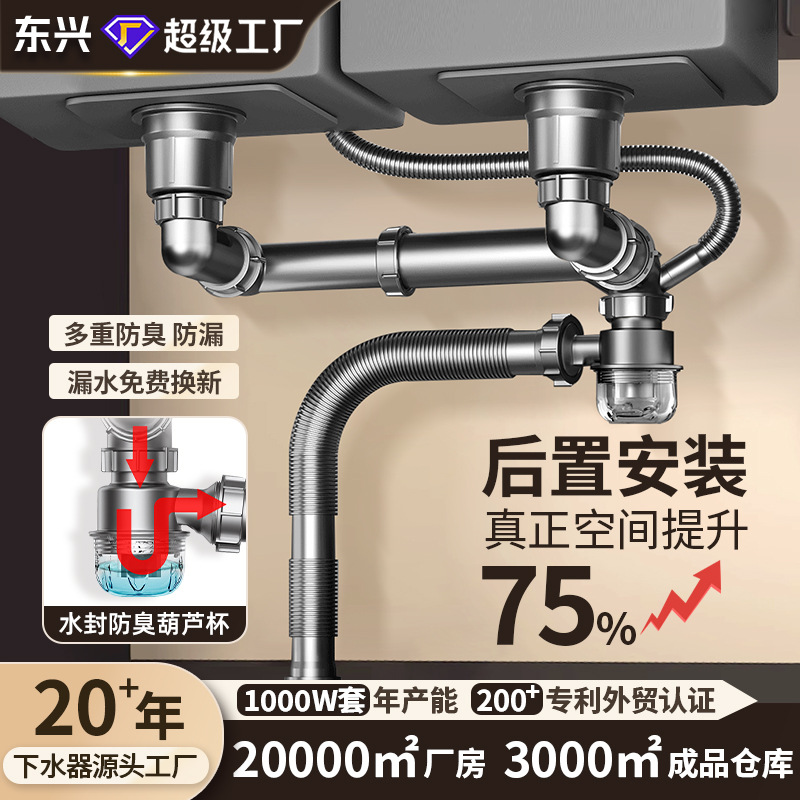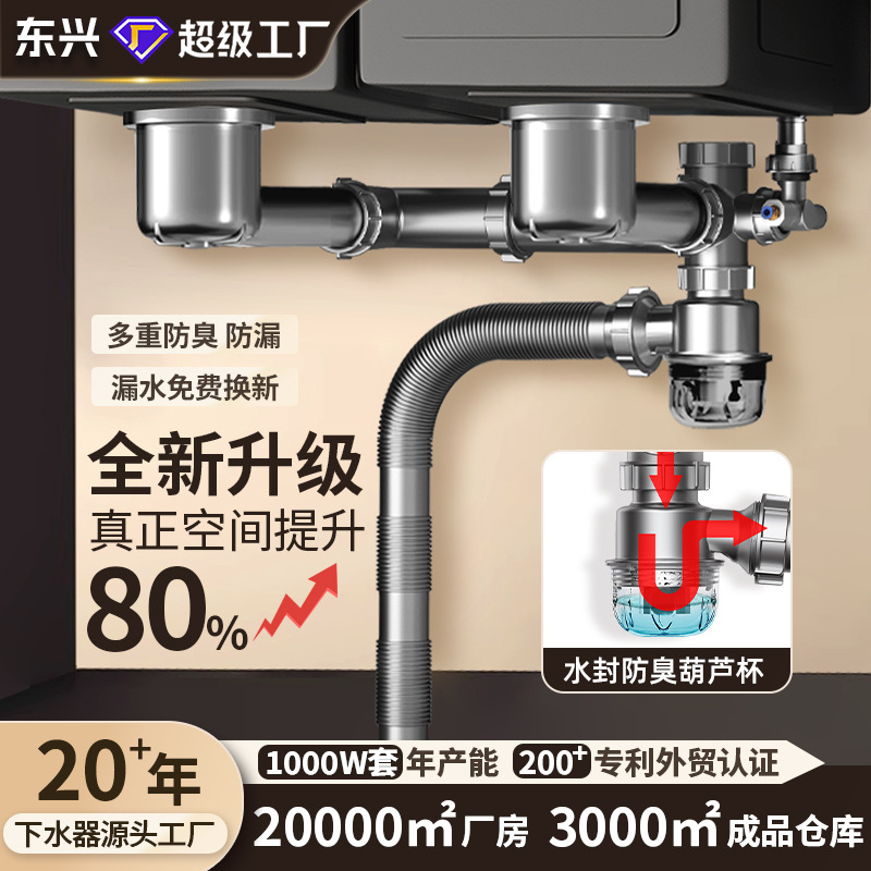 洗面器304ステンレス二槽下水器台所洗面器防臭洗面器下水管卸売り