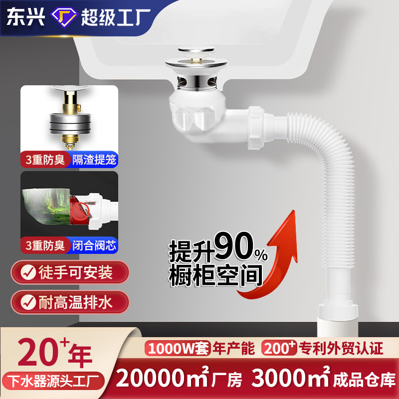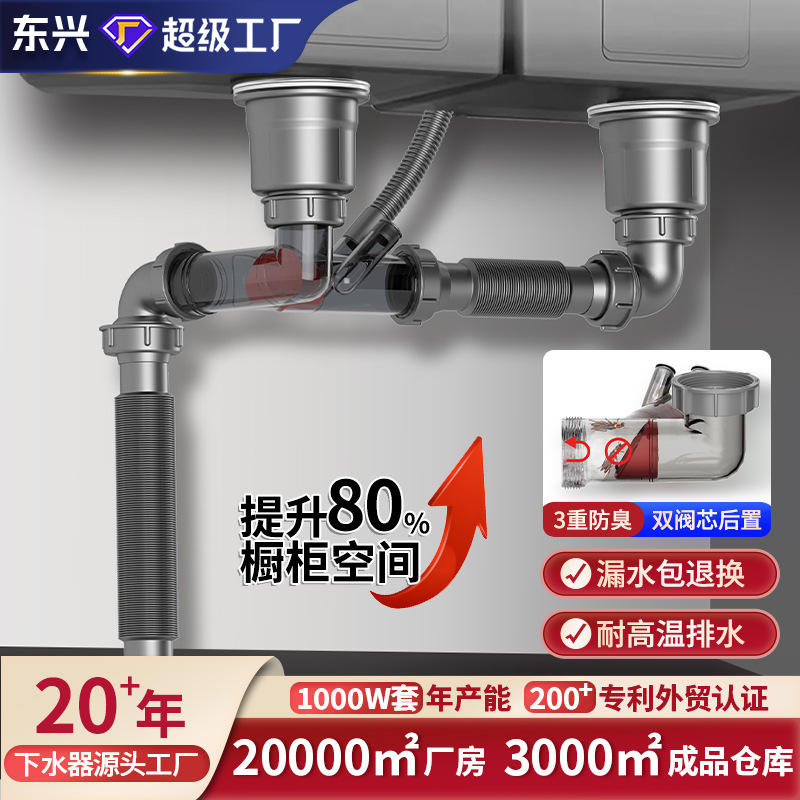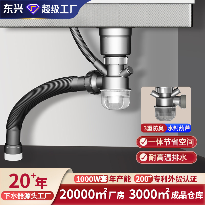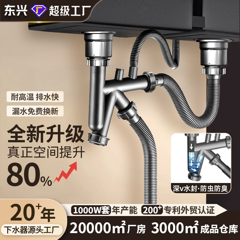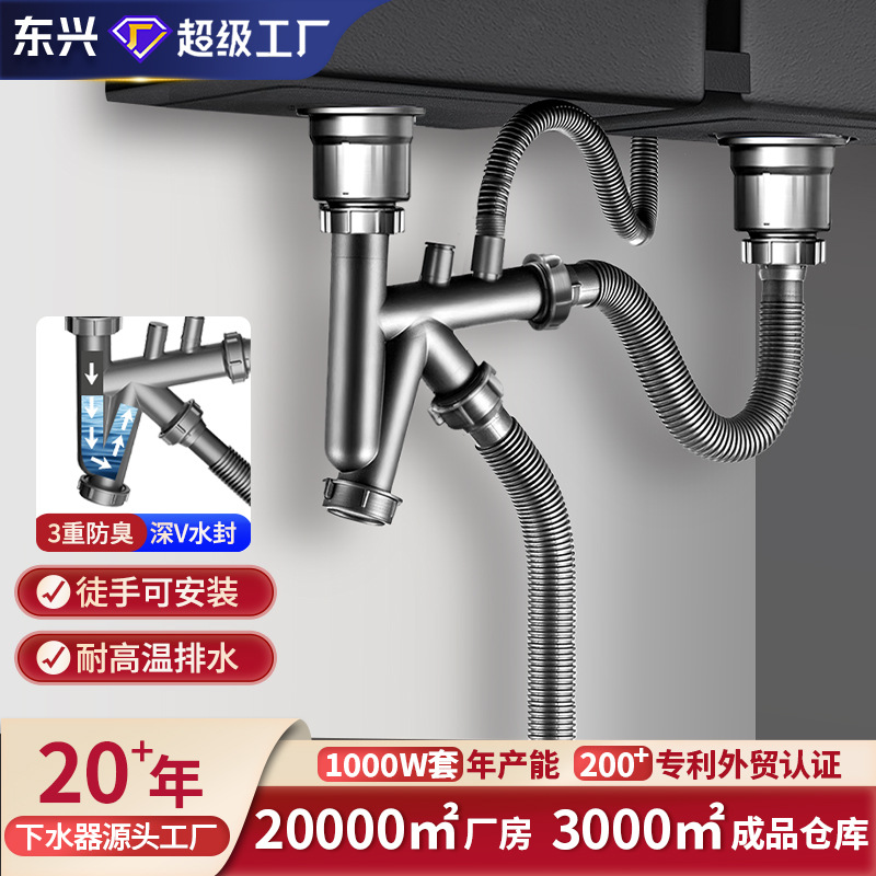 深v管下水器単双槽厨房洗菜盆下水管セット防臭神器防止排水管卸売り
