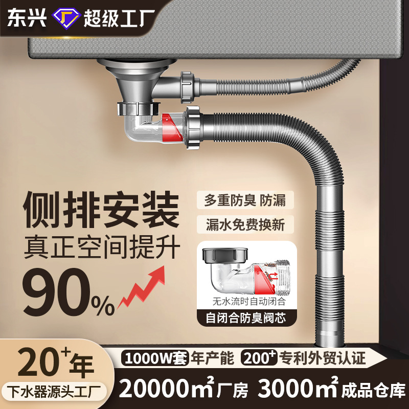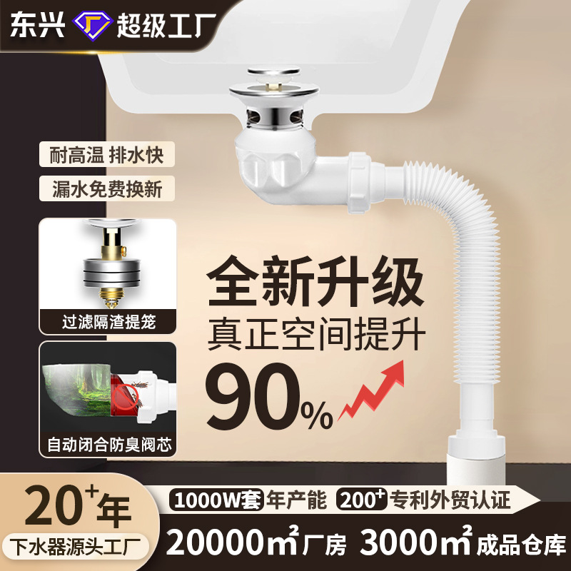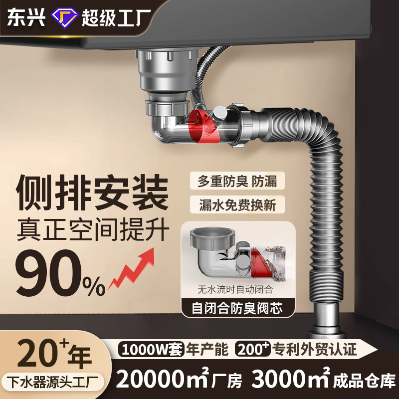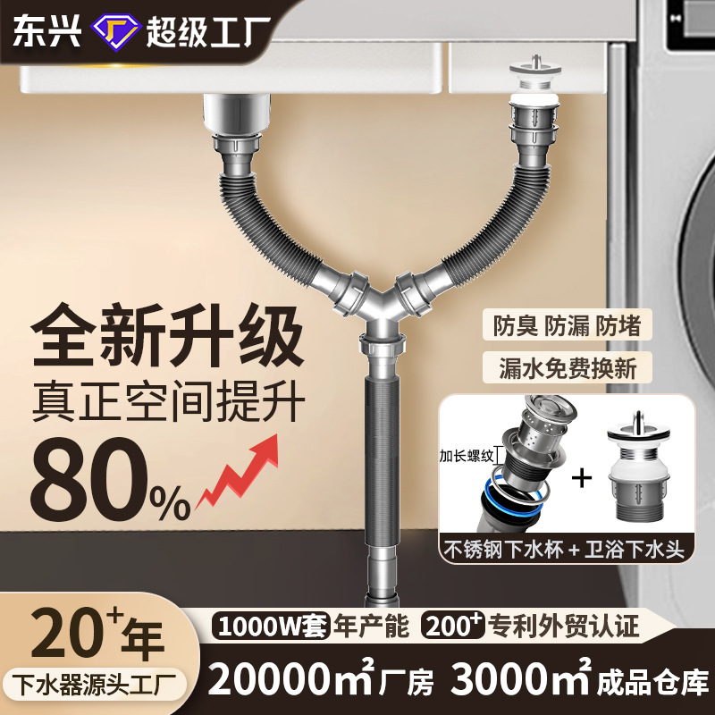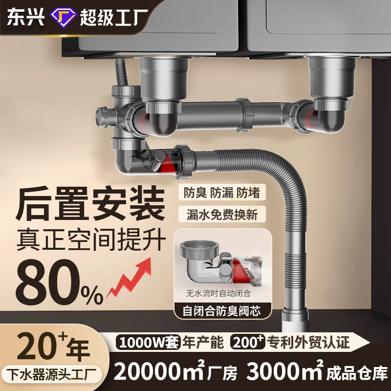 深v管下水器単双槽厨房洗菜盆下水管セット防臭神器防止排水管卸売り