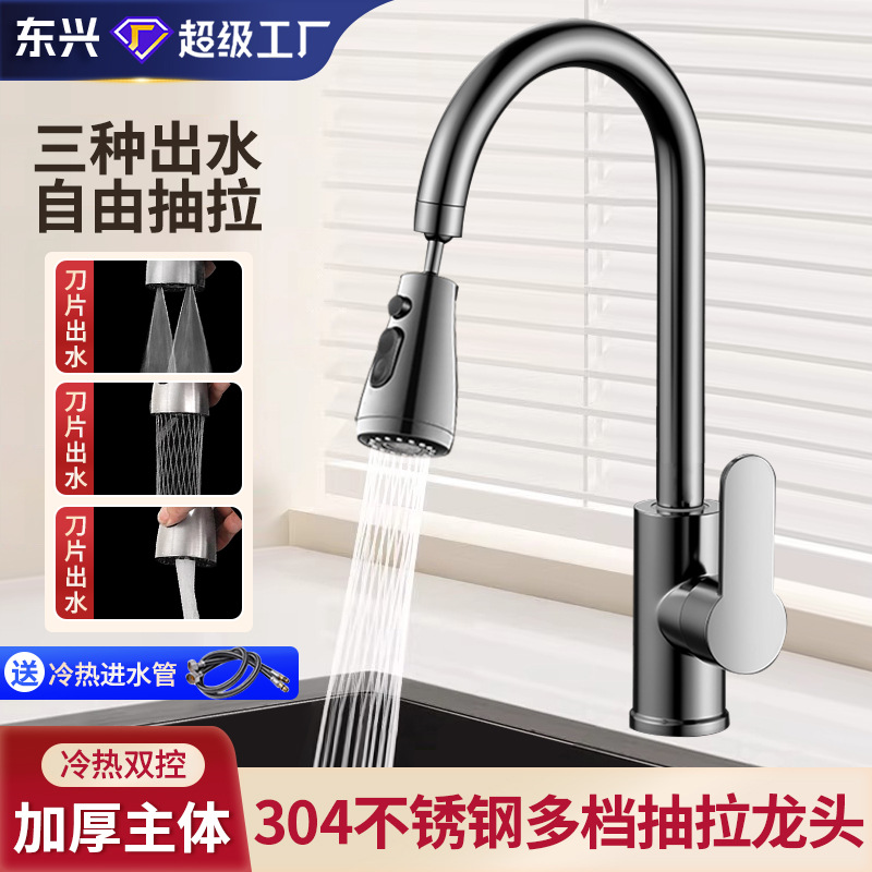 シンク引き出し式蛇口キッチン 304 ステンレス鋼の温水および冷水蛇口シンク防滴回転式蛇口