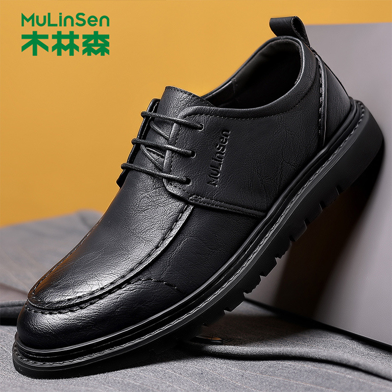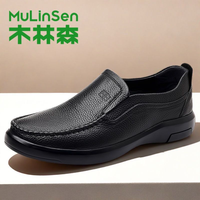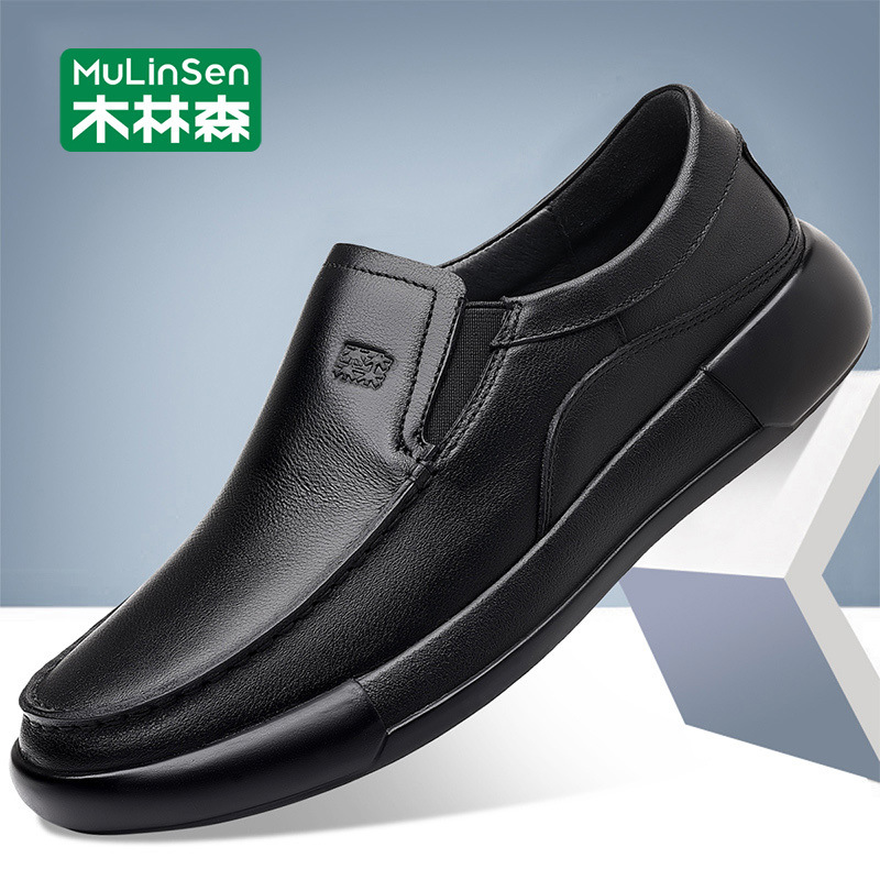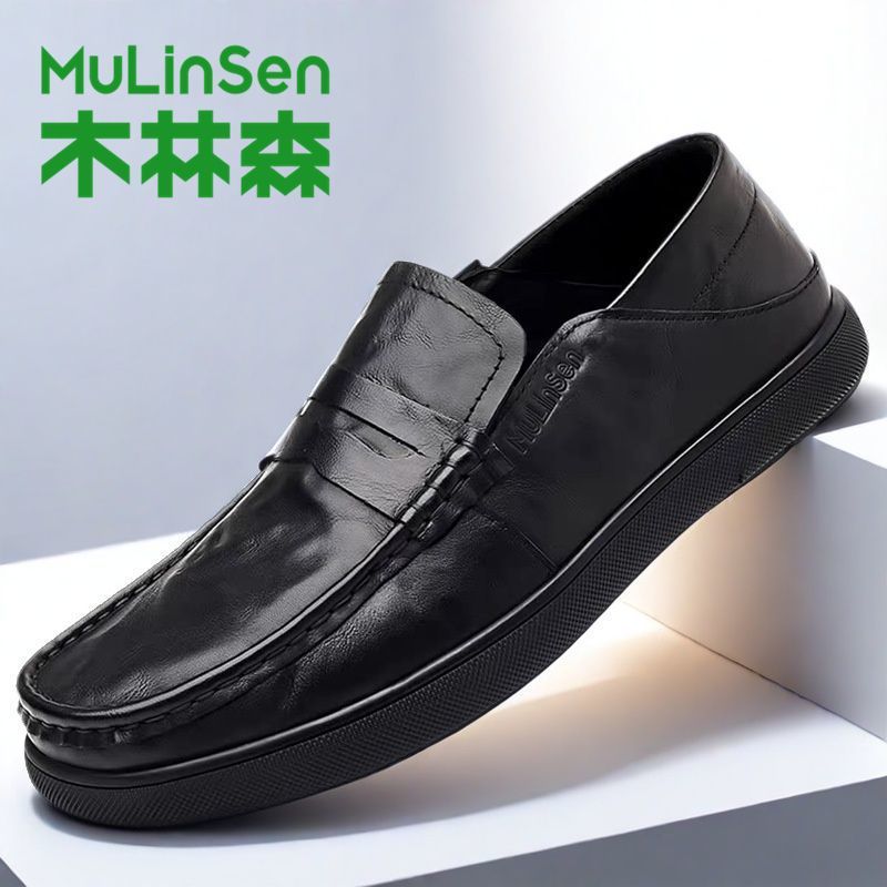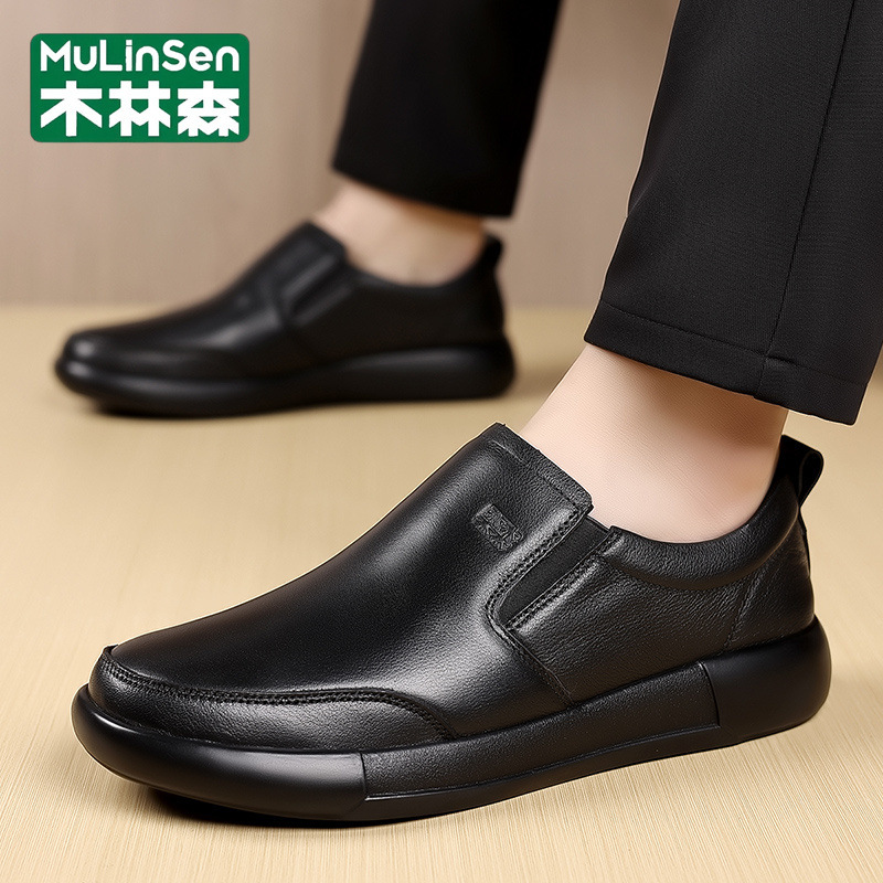木林森革靴男本革トップ牛革ビジネスカジュアル靴2025春軟面軟底カバー足豆靴