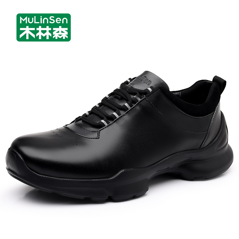 木林森男靴2025新型春秋ランニングスポーツ靴男性カジュアル靴皮面厚い底父潮靴