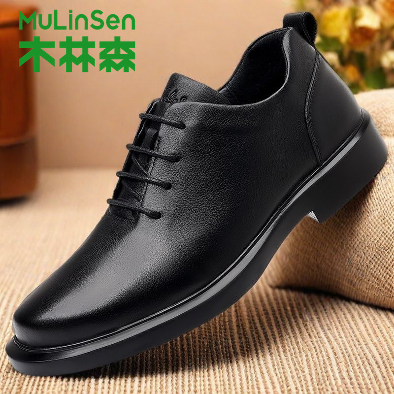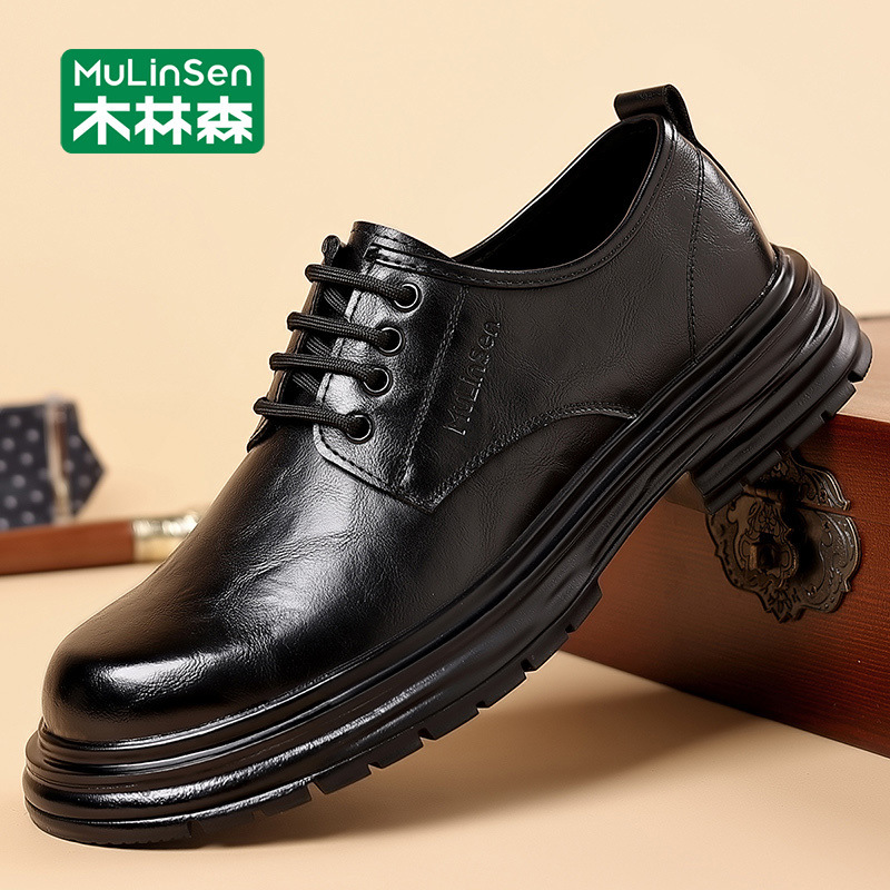 木林森真皮革靴男頭層牛皮ビジネス正装2025新春英倫軟底カジュアル男靴