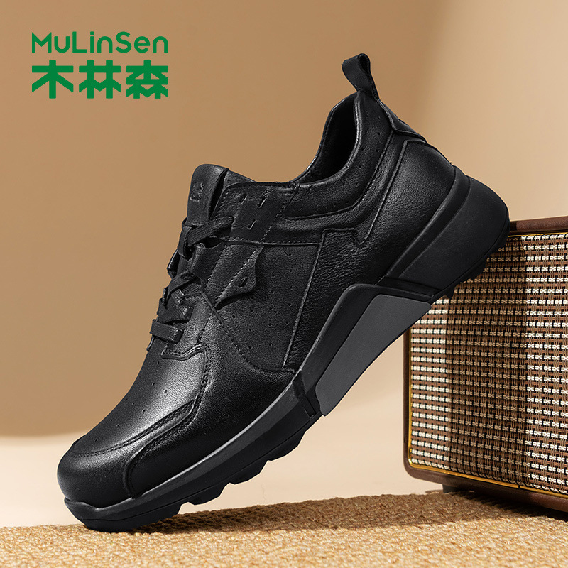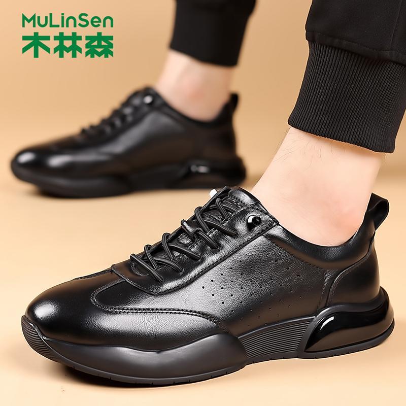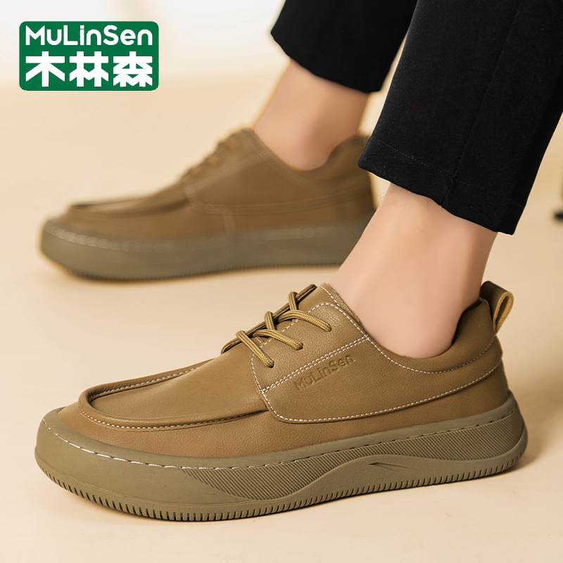 木林森男靴2025新型春秋レジャートップ牛革厚い底英倫風スポーツレジャー靴男