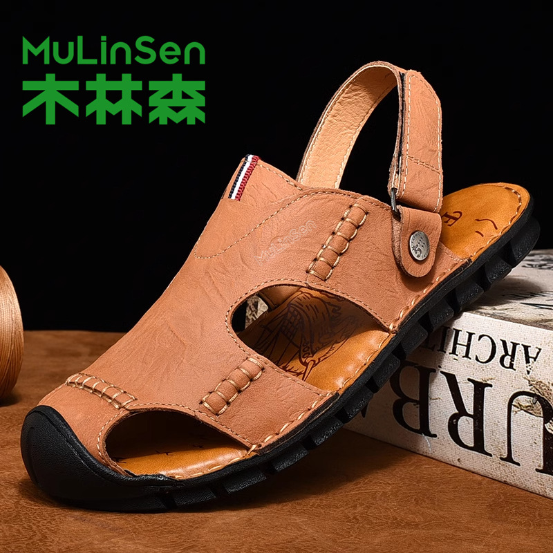 木林森サンダル男性2025新型夏通気ネット靴男性屋外ビーチ靴軽便包頭サンダル