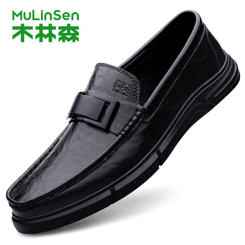 木林森男靴2024の新しい厚い底の楽福靴の本革の耐摩耗性カジュアルシューズの怠け者の足は靴の中年を踏んでいます。