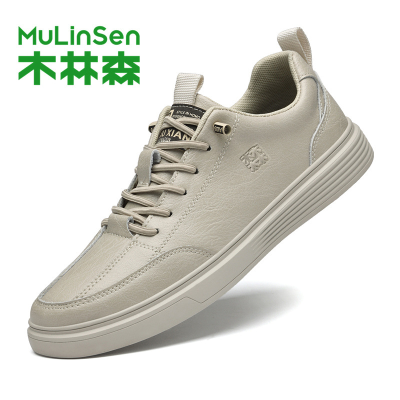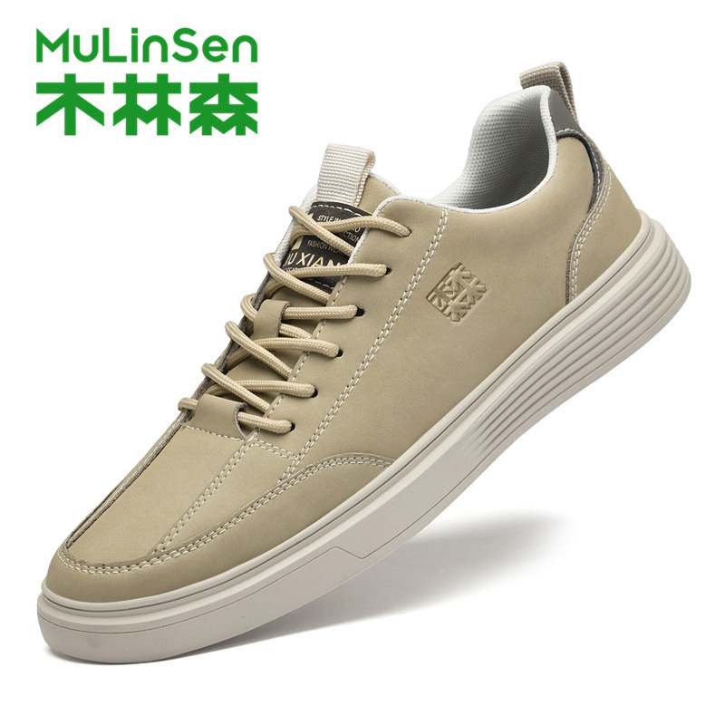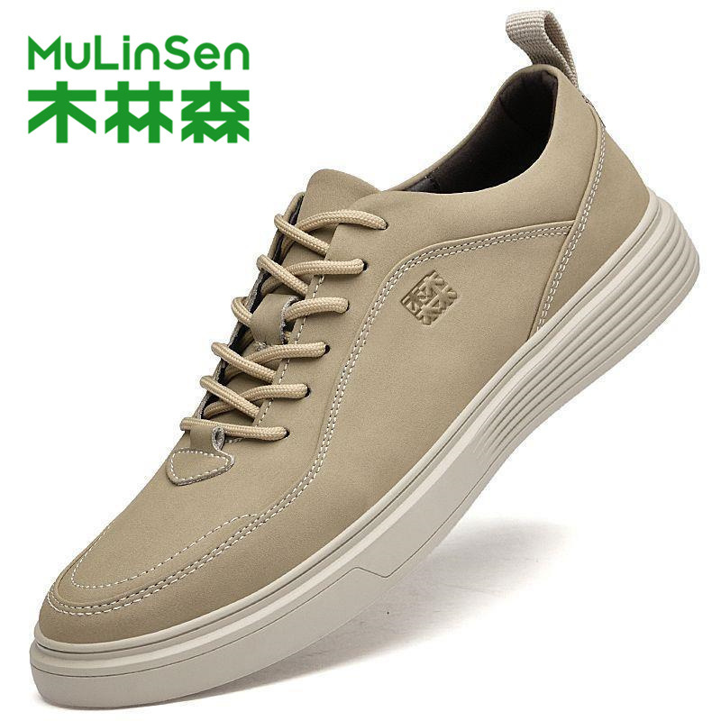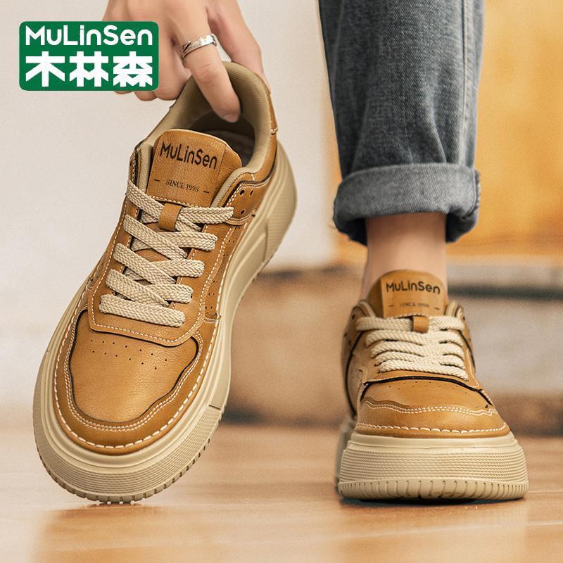 木林森レジャー板靴男2024新真皮英倫工装靴小麦色厚い底高男板靴
