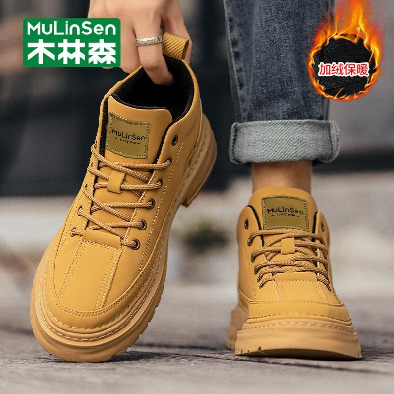 木林森高組板靴男2024新型秋冬英倫復古百合滑り止めレジャー工装ファッション靴Y