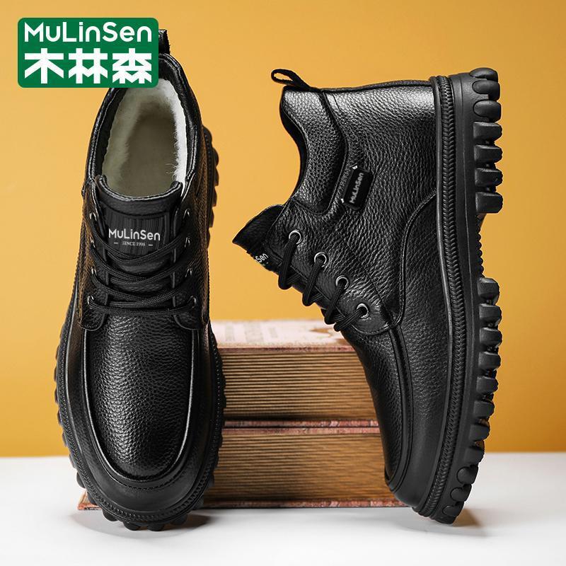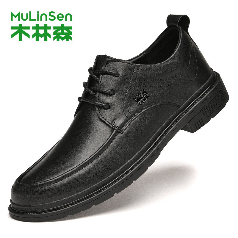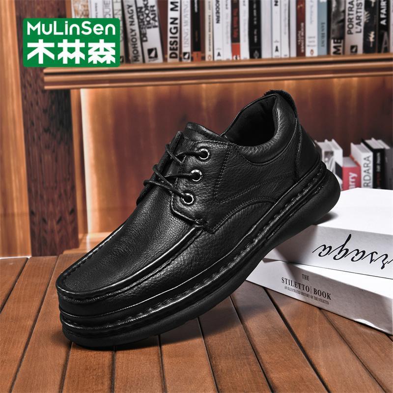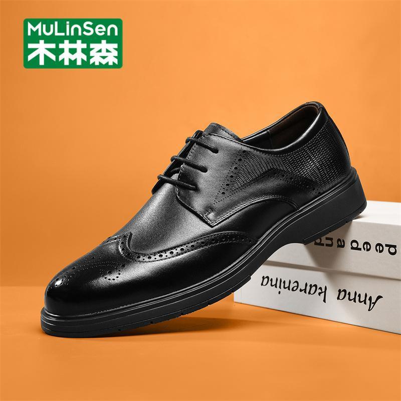 木林森真皮男靴秋冬スタイルビジネススーツ靴男カジュアル通勤高級黒ダービー靴