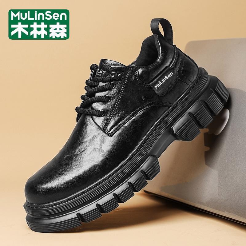木林森男靴2024新型秋ビジネスカジュアル靴男の厚い底の耐摩耗性が高くなりました。