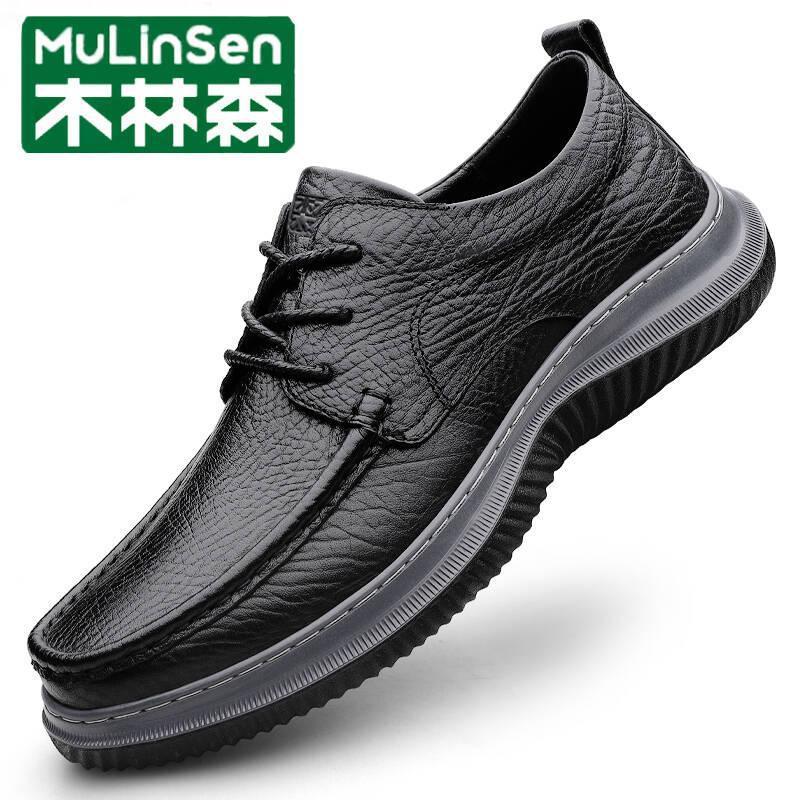 木林森男靴秋冬新作ビジネス革靴メンズ本革カジュアルシューズソフトボトムアウトドアスポーツランニングシューズ