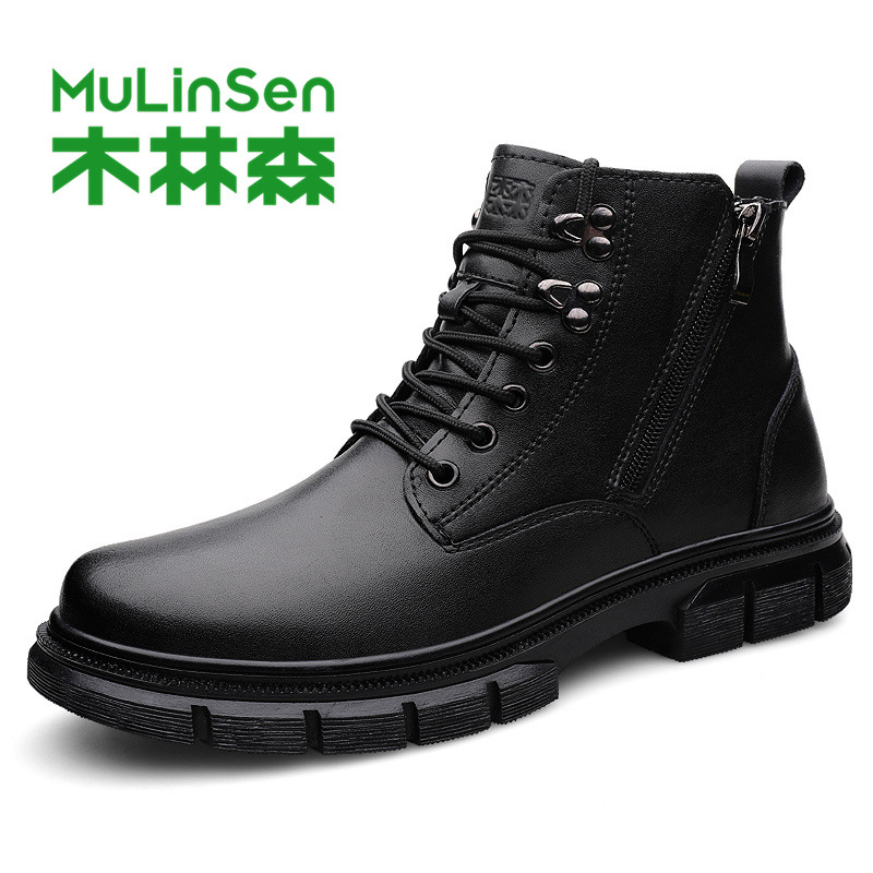 木林森マーティンブーツ男高組真皮冬ベルベット保温綿靴ジッパー綿革靴機関車工装靴W