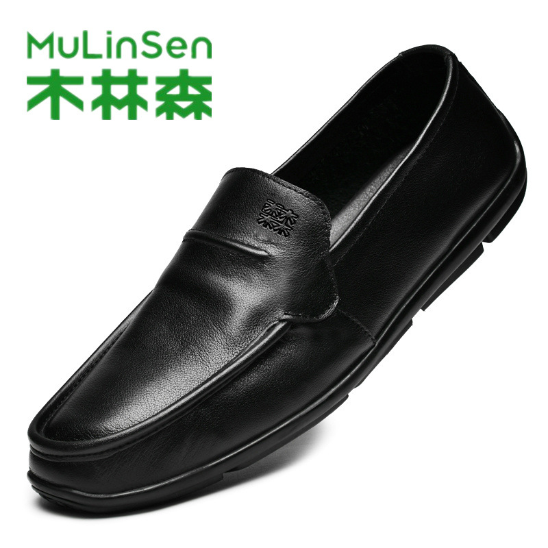 木林森夏靴男頭層牛革真皮軟底カジュアル靴一足足足足足軟皮通気豆男靴