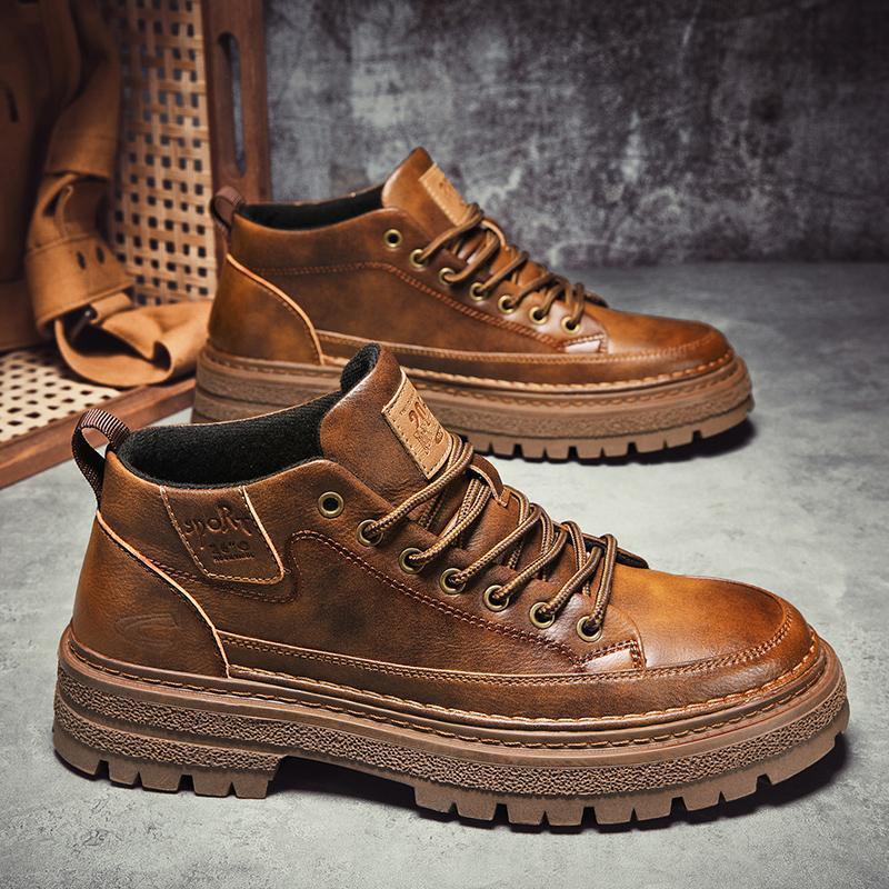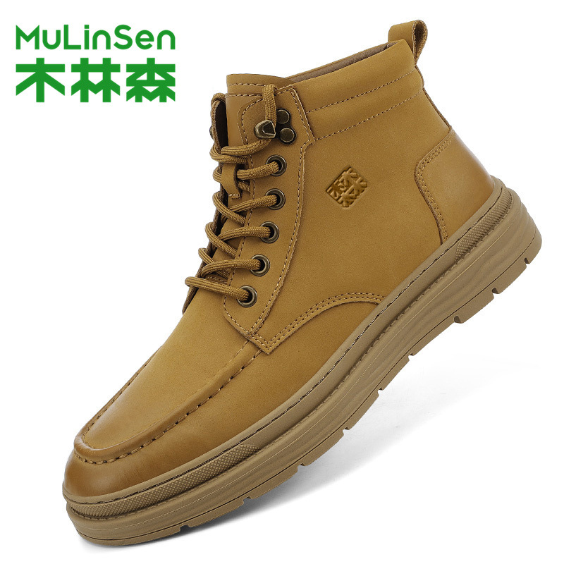 木林森本革男靴2024秋冬新作アウトドアカジュアル革靴ファッション百合高級ソフト底お父さん靴