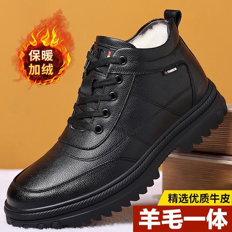 ドイツのラクダのダイナミックな冬の雪の靴の男性の毛皮の一体のお父さんの靴の本革の靴とベルベットの保温綿の靴