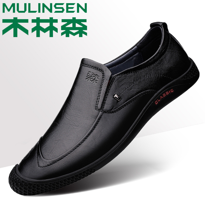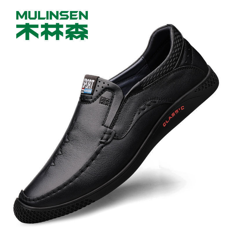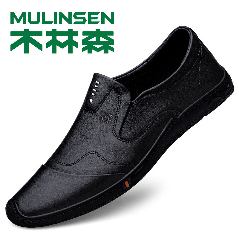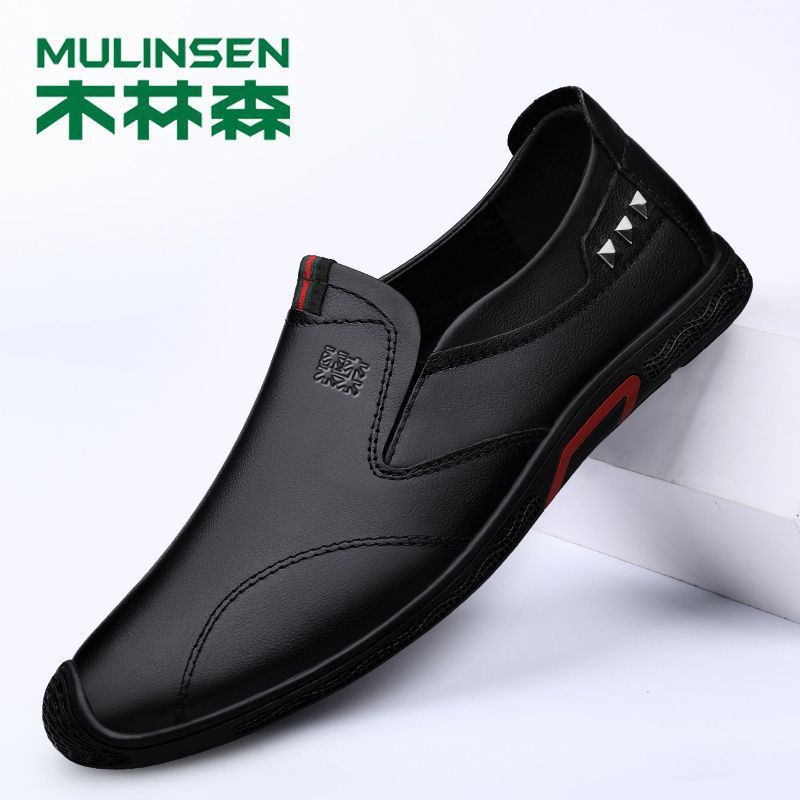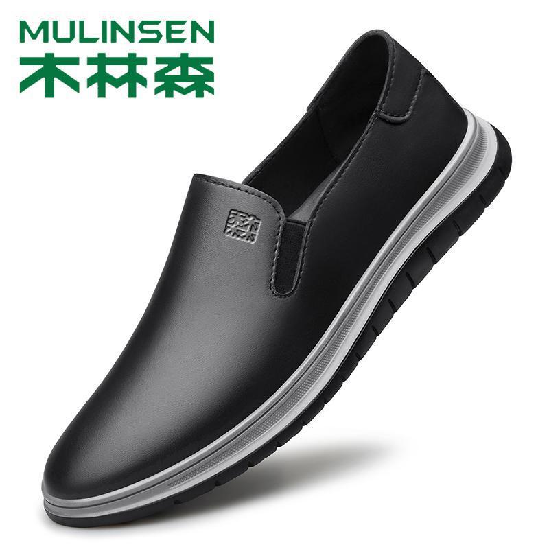 木林森革靴男本革ソフト面皮百合靴男ソフト底快適足漕ぎ青年男性カジュアルシューズ